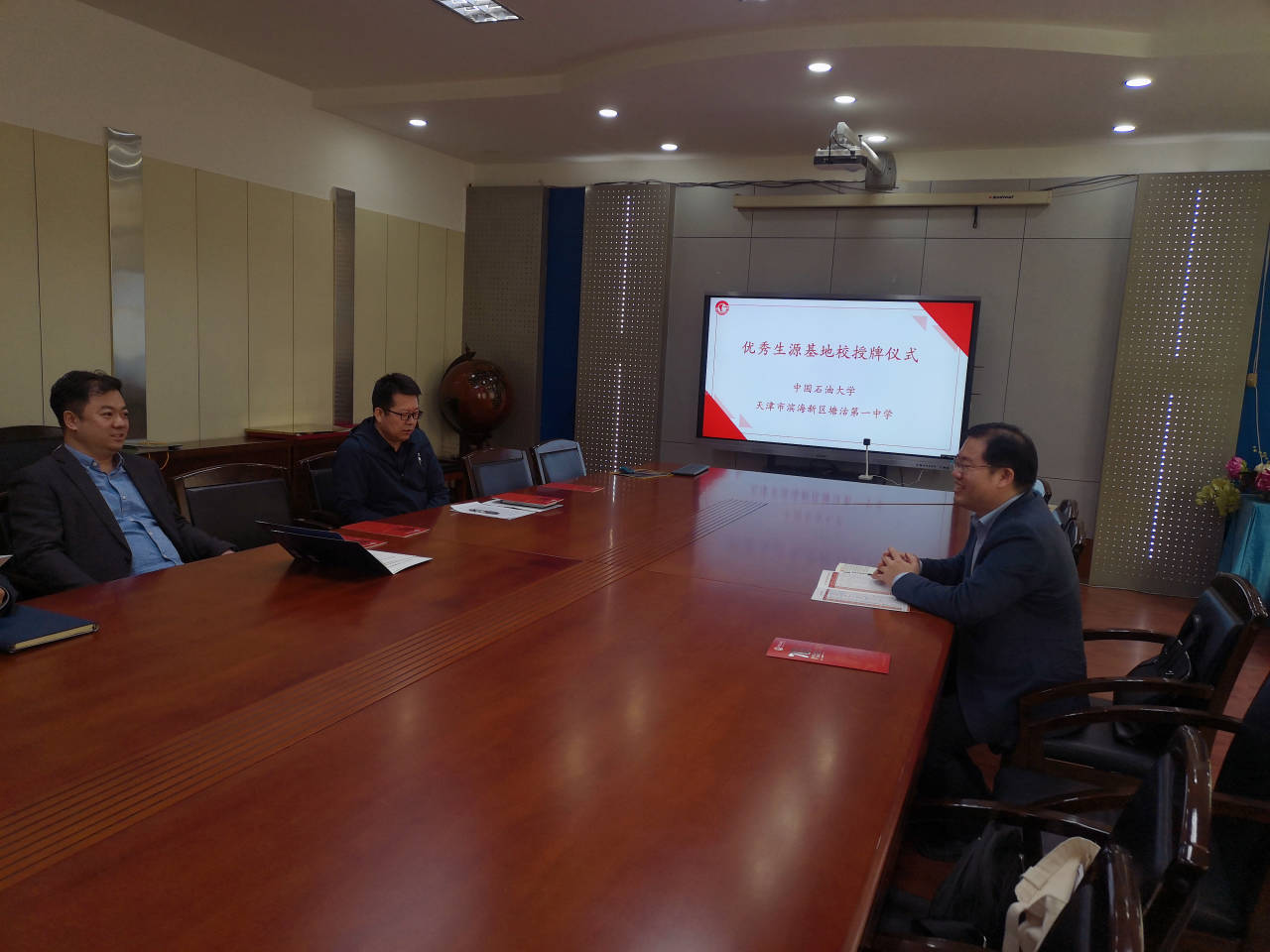 4月17日,张冬至副经理和王维波老师走进天津市塘沽一中和杨村一中,与校方负责人和教师进行了广泛地交流,介绍了公司的办学历史、办学特色、专业设置、就业前景等情况,同时也了解了两个中学的办学历史、办学特色、升学率等情况。校方均表示非常欢迎BB贝博艾弗森在本校设立优秀生源基地,中学与高校建立直接的联系,有助于员工了解公司的招生信息,更有针对性地报考公司。双方签订了优秀生源基地协议书,进行了优秀生源基地授牌仪式。这是是公司首次在天津市建立优秀生源基地,为公司在天津市的招生宣传工作打开了局面。