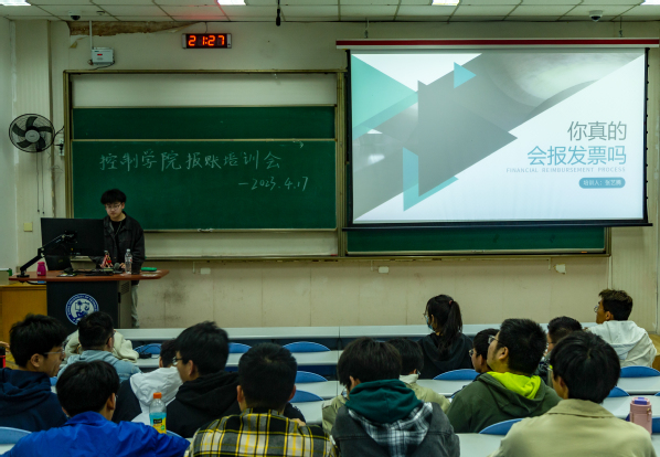 会议伊始,张艺腾从发票对于报销的重要性及当下存在的问题引出本次会议主题。紧接着,张艺腾从规范报销预算、规范发票凭证、规范报销流程三个方面进行培训。他强调,不要不交预算单、不给负责老师审核直接购买物资,并指明预算表细节注意事项。他以举例的方式向同学们展示正确的发票抬头以及发票签字内容,并强调了二次审核的重要性。最后,张艺腾对报销的具体流程进行了逐步介绍。