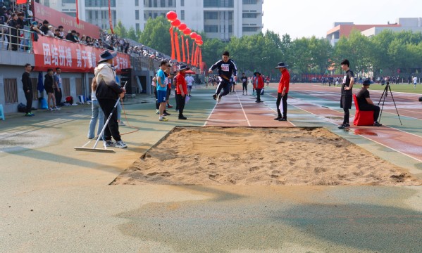 陈孝喆参加教职工跳远项目 井国丞摄