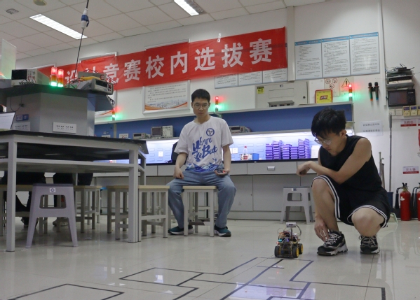 本次比赛共有两个赛题,分别是信号A题和控制B题。参赛队伍根据所选赛题进行比赛结果的验收。验收现场井然有序,在基础实验楼B107分区域设置了两赛题的验收点,参赛队伍按顺序进入验收场地,依照比赛规则展示小组作品,最后由评委对展示的作品进行评价和打分。