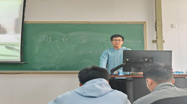自动2303团支部于2023年11月10日召开推优大会。会议由团支书蔡仪航主持工作,支部内15名团员、6名群众参加会议。