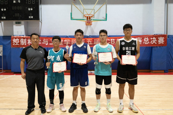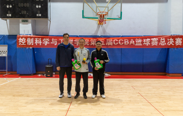在12月3日的决战之夜中,智感2102班在季军争夺战中凭借队长纪开元的稳定发挥,以73:57力压自动化2203班荣获第三名。教师投篮大赛的决赛在之前投篮环节累计得分最高的男女各四位教师中进行,其中孙静和王珺两位老师在女子投篮决赛中均为5投5中,最终孙静凭借用时短的优势折桂,夏凌云凭借10投6中的精彩表现力压对手夺魁。由3位教师和4位员工选手共同参加的三分大赛进程同样胶着,3名领先的选手成绩相同,最终叶端南凭借用时短的优势成功问鼎。同时,夏凌云凭借7场比赛66分的完美表现夺取本届大赛的教工得分王,公司经理于连栋教授和党委书记刘伟锋教授分别为获奖的师生颁发了奖杯。在最后进行的决赛中,卫冕冠军研2103班与去年季军研2201狭路相逢,首节凭借内线核心刘子晨的精彩发挥,研2103打出高质量的防守,建立了10分的领先优势,次节研2201班调兵遣将,众志成城,将比分差距缩小到4分。中场投篮双方同样不分伯仲,研2103班以27:24险胜3分,带着7分的优势进入下半场。下半场开场后比分一度拉大到12分,研2201班的超级内线李腾飞在攻防两端突然发力,连投带罚带领球队在距离全场结束还有2分钟的时候,将比分追至54:56只差2分,场上的气氛达到了白热化,关键时刻两届MVP得主研2103班李旭挺身而出,连续贡献关键抢断并反击得手,助攻神射手孙赫投入了杀死比赛的三分球,最终研2201班无力回天,研2103班以65:56蝉联CCBA篮球赛的冠军,刘子晨获评本届比赛MVP。