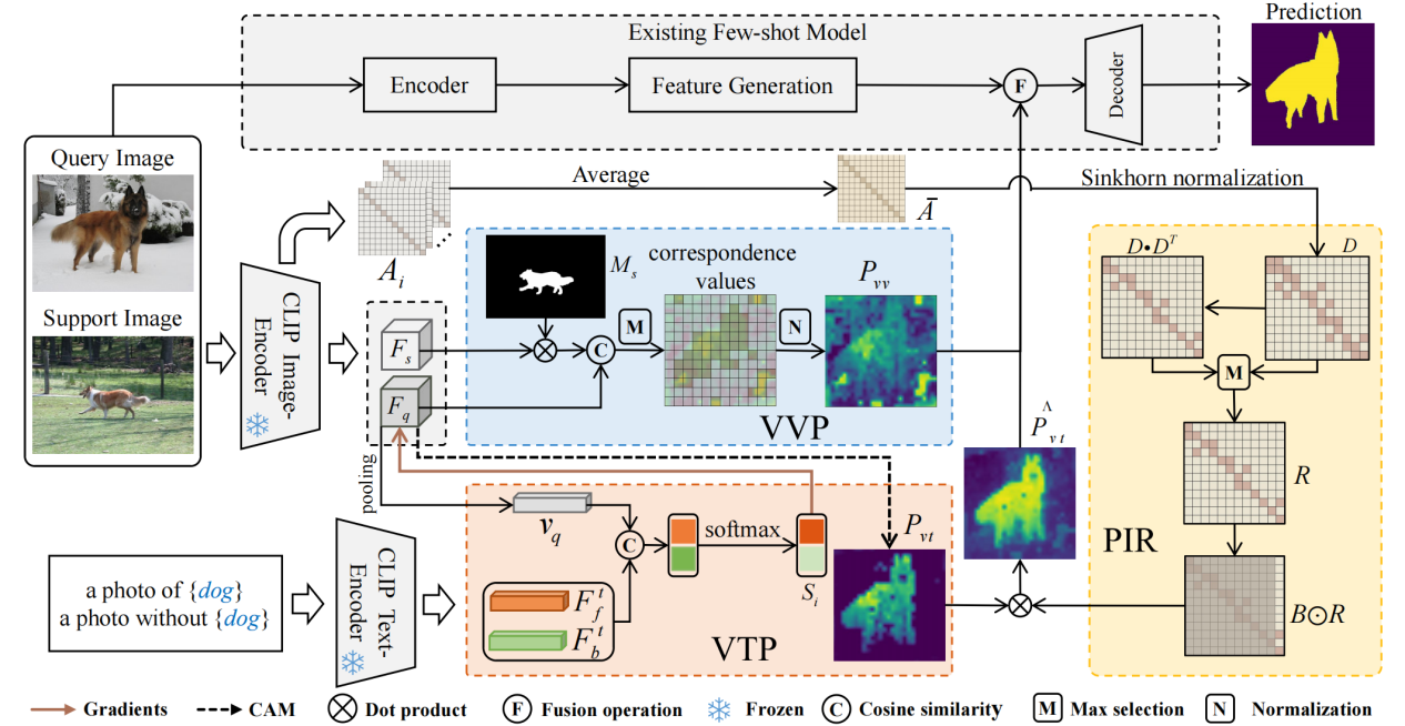 相关研究一:针对小样本图像分割领域先验表示存在粒度粗糙和难以泛化到新类的问题,提出用视觉-文本对齐能力取代原有的视觉先验表示,以获得更可靠的先验指导,相关研究论文《Rethinking Prior Information Generation with CLIP for Few-Shot Segmentation》被CVPR 2024录用(王进,张冰峰,庞健,陈鸿龙,刘伟锋)。该工作得到国家自然基金、山东省自然基金、山东省泰山学者青年专家计划等项目的资助。公司博士研究生王进为第一作者,刘伟锋教授、张冰峰副教授为通讯作者,BB贝博艾弗森为第一署名单位。