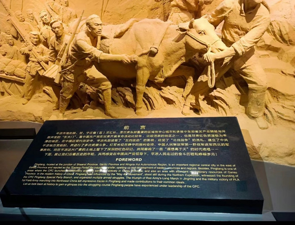 实践队的首站是红色长征展厅。这个展厅以逼真的方式再现了红军长征的崎岖征程。通过模拟长征途中的崎岖山路、险峻的河流以及艰苦的生活环境,每位实践队成员仿佛置身于那个英勇的时刻。展厅内的照片、文件和个人物品记录了平凉红军在长征中的不懈斗争和无私奉献,这些珍贵的历史遗迹深刻地展示了红军战士们的坚韧品质和勇敢精神,令人感受到历史的激情。