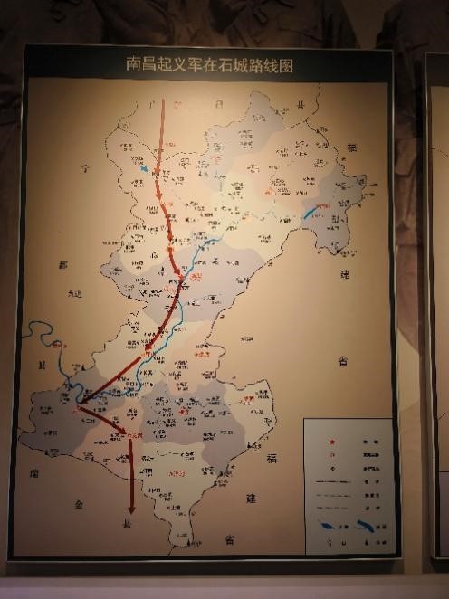 紧接着,呈现在我眼前的是发生在石城的革命地点以及南昌起义军在石城路线图,曾经在历史课本上的南昌起义就这样以更立体的形式出现在我面前。这表明着,革命不只是宏观的,也是无数的星星之火构成的,星星之火,可以燎原。