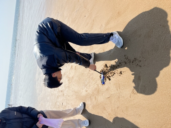 图1 同学们清理沙滩上的垃圾 兰翔摄