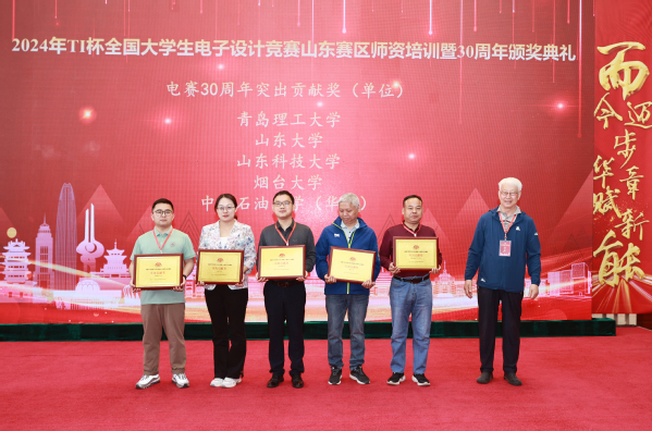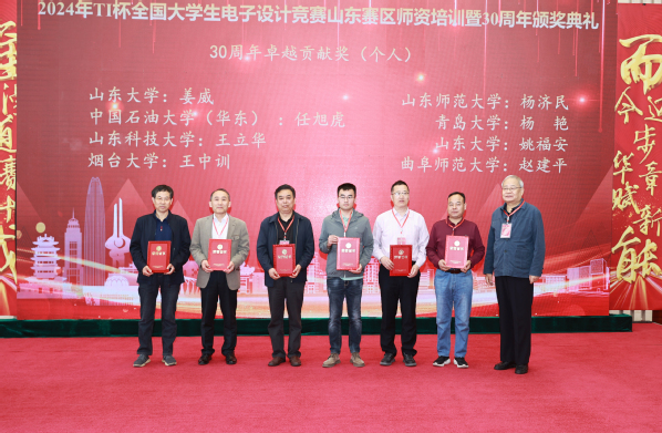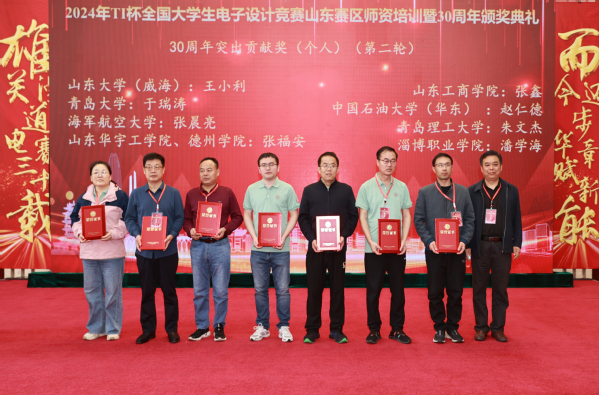 近日,2024年TI杯全国老员工电子设计竞赛山东赛区团队培训暨30周年颁奖典礼在济宁公司举行,隆重表彰在山东赛区30年办赛历史中表现优异的集体和个人。公司获得全国老员工电子设计竞赛山东赛区30周年突出贡献奖(集体奖,全省共5项),任旭虎老师获得卓越贡献奖(个人奖,全省共8人),赵仁德老师获得突出贡献奖(个人奖,全省共17人)。