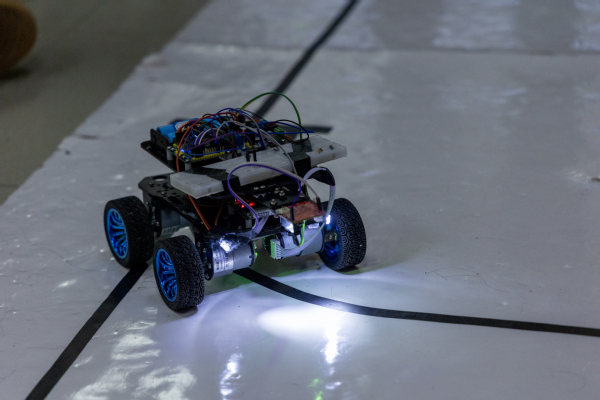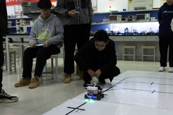 经过一个半月的不懈奋斗,各参赛队伍均完成培训要求和选题作品,于4月30日18时至18时30分将参赛作品提前交至基础B107封箱区。本次复试验收于19时开始。验收期间各队伍按照负责人安排有序进行验收。评委根据试题功能的实现、设计报告等方面对作品进行打分评价。