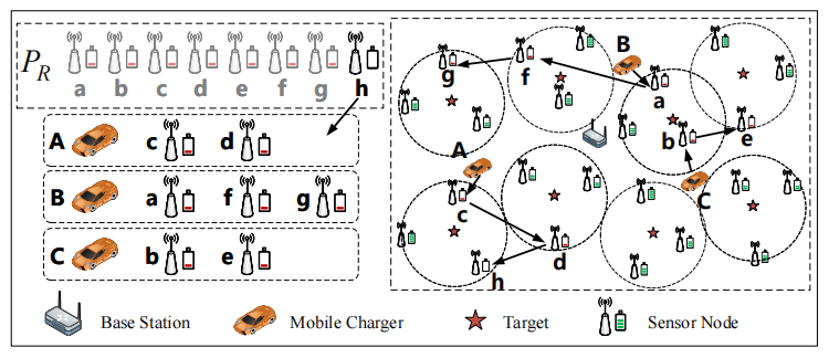 进展二:针对无线可充电传感器网络中多移动充电器按需充电调度的最大化目标覆盖率问题,提出了基于请求匹配机制和基于请求分组机制的多移动充电器协同调度方法。相关研究论文《Towards Maximizing Coverage of Targets for WRSNs by Multiple Chargers Scheduling》被CCF A类、计算机网络领域顶级期刊IEEE Transactions on Mobile Computing (TMC)录用(薛焕昇,陈鸿龙,倪志琛,刘小龙,夏锋)。该工作得到山东省优青项目、山东省泰山学者青年专家项目、国家自然科学基金面上项目等项目的资助。公司博士研究生薛焕昇为第一作者,陈鸿龙教授为通讯作者,BB贝博艾弗森为第一署名单位。