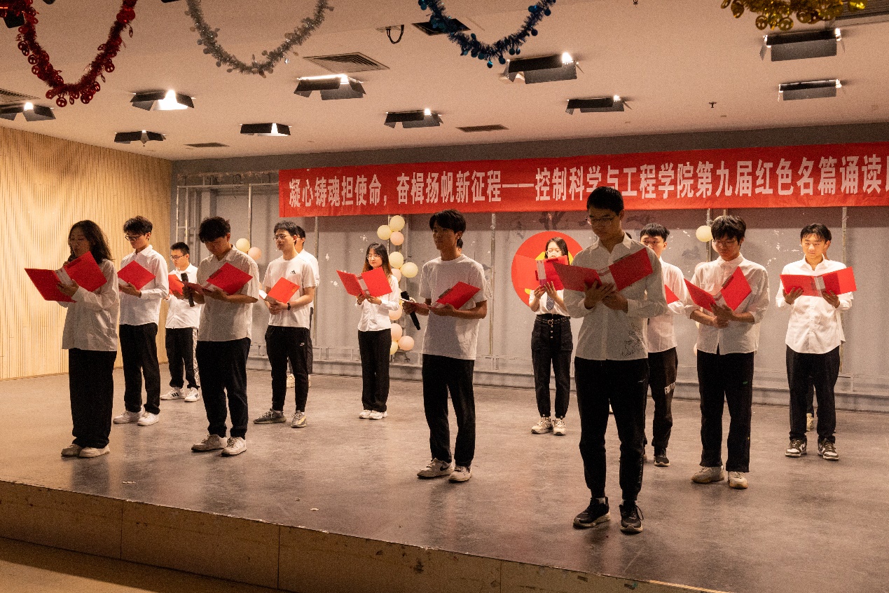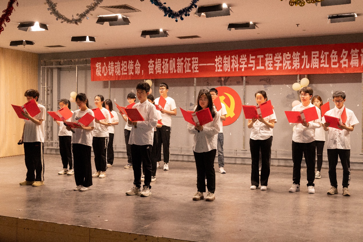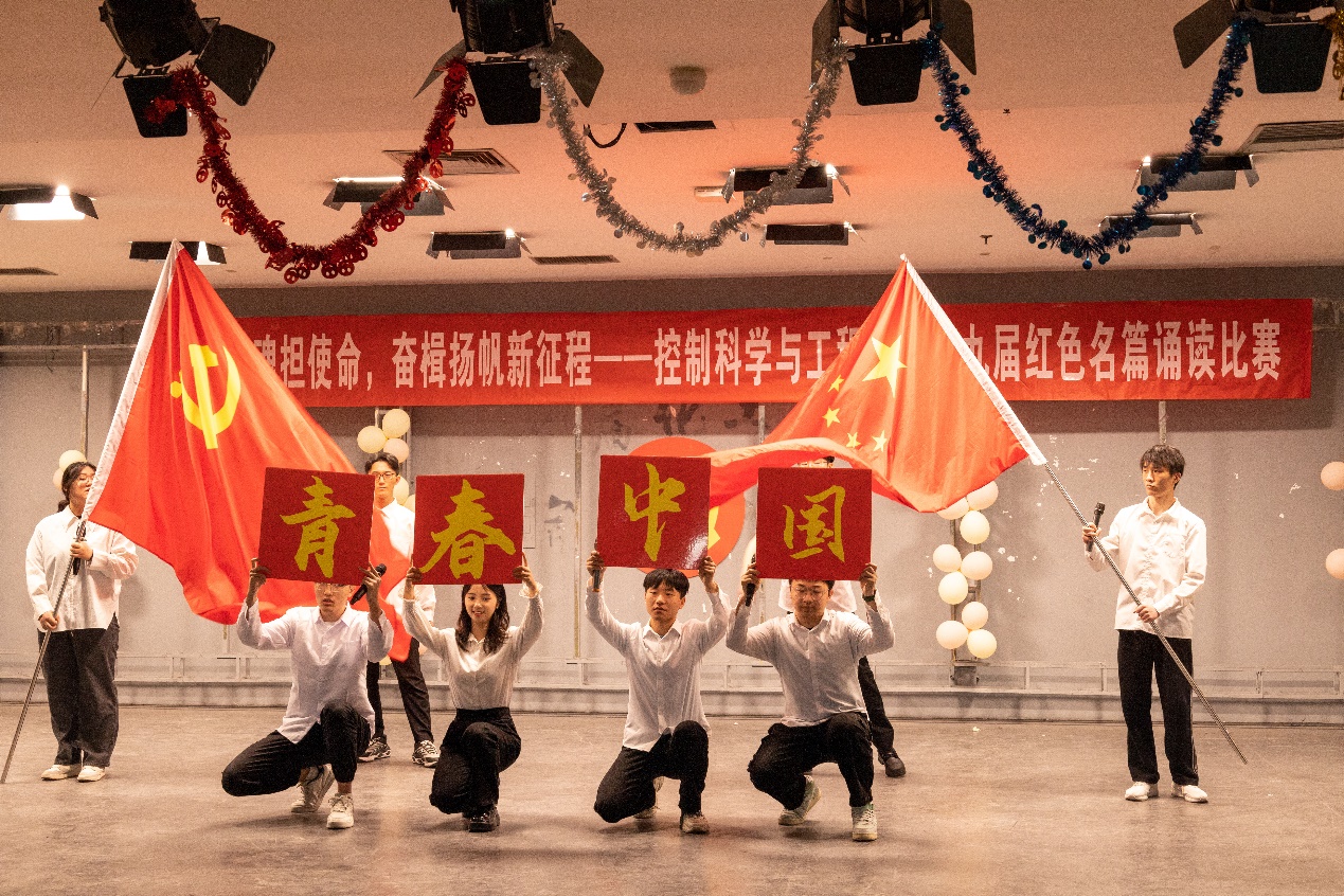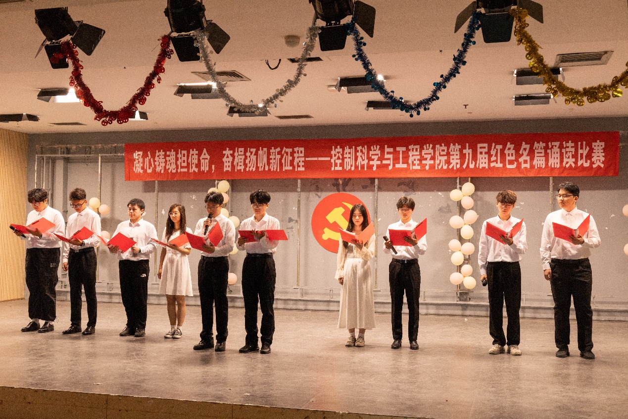 本次比赛在主持人慷慨激昂的开场白后正式拉开帷幕。“姑娘好像花儿一样,小伙儿心胸多宽广……这就是美丽的祖国”,自动化专业第三党支部带来的情景剧《横空出世》展现了一批有着爱我中华的炽热情感、强我中华的强烈愿望的热血男儿为着制造出原子弹的共同目标克服万难的故事,他们声情并茂、慷慨激昂的朗诵,博得现场观众阵阵掌声。自动化专业第四党支部倾情朗诵《青春说》,回顾先辈革命事迹,学习先辈革命精神,倾诉着对祖国母亲的热爱。忆往昔峥嵘岁月,看今朝民富国强。测控专业第四党支部朗诵的《我的祖国》回望百年历史,礼赞党的伟业。“海到无边天作岸,山登绝顶我为峰。我们作为新时代青年,有理想,志坚定,肯大斗,报国家,我们不断前行,奋力奔跑,因为心中坚信,山海可蹈,未来可期!”,自动化专业第一党支部朗诵的《赋青春以歌,谱理想华章》用铿锵有力的声音叙述着百年光辉历程,用满腔的热忱歌颂着百年丰功伟绩。