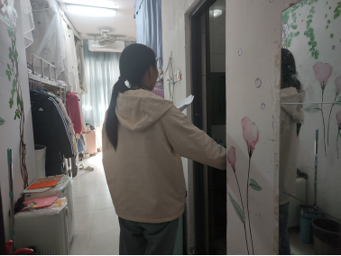 组图1 辅导员检查宿舍安全隐患与卫生状况