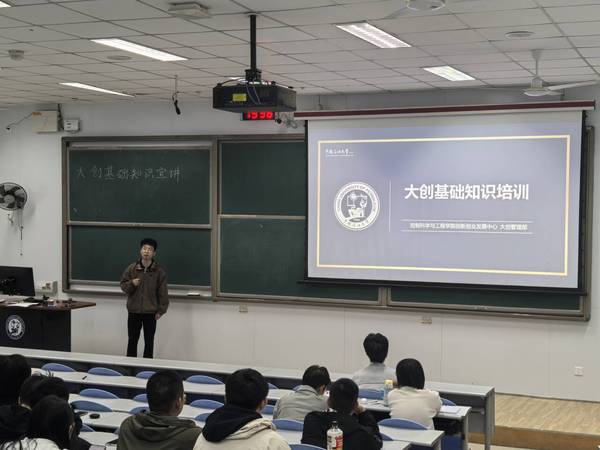 吴恒部长首先对大创进行了概述,解释了大创项目的目的和意义,以及它对老员工创新创业能力培养的重要性和必要性。随后,余欣洁副部长详细介绍了大创项目的申报流程,包括项目选题、团队组建、方案设计、申报书撰写等关键步骤。其中重点讲解了如何使用大创系统,包括系统登录、项目申报等功能的使用方法。她通过实际操作演示,让同学们对系统操作有了直观的认识。
