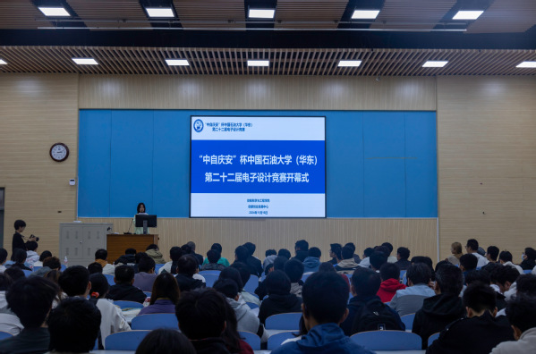 2024年11月16日下午3点,“中自庆安”杯中国石油大学(华东)第二十二届电子设计竞赛开幕式在南教300教室举办。BB贝博艾弗森双创中心曾任主席、指导老师翁泽学长受邀出席,第一期全体参赛队伍代表到场,开幕式由双创中心杨璇同学主持。