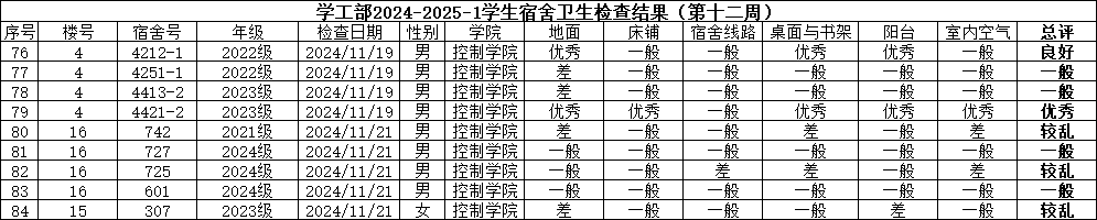 BB贝博艾弗森优良舍风建设小组检查结果(第十二周):