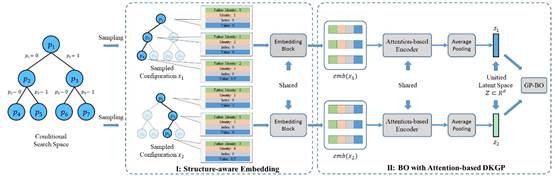 相关研究三:针对存在树形搜索空间的黑盒超参数优化问题,提出了一种基于自注意力与深度核框架的贝叶斯优化算法,通过transformer将树形搜索空间中各子空间的响应曲面统一进行了建模。相关研究论文《Modeling All Response Surfaces in One for Conditional Search Spaces》被AAAI 2025录用(李家兴,刘巍,薛超,詹忆冰,王晓星,刘伟锋,陶大程)。公司硕士研究生李家兴为第一作者,BB贝博艾弗森为第一署名单位。