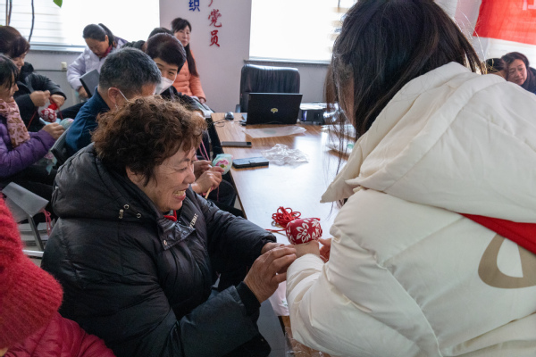 最后,活动成员为老人们分发准备好的艾草锤材料,讲解艾草锤的制作方法。在团支部成员的帮助下,老人们成功制作了自己的艾草锤。大家也在亲切的交流和互动中,感受到浓浓的温情。