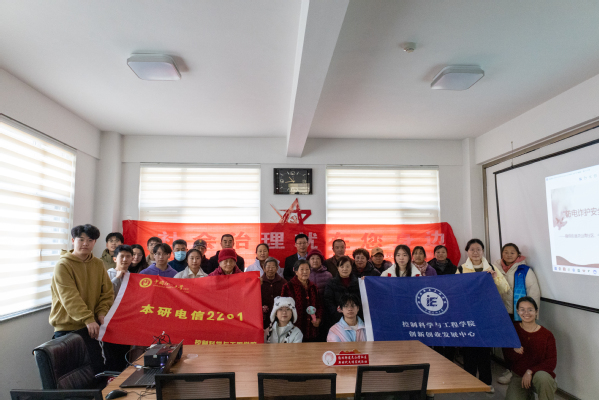 12月25日上午,部分成员来到卡地亚·和园小区进行本次主题团日活动的社区部分。活动伊始,本研电信2201团支部杨璇同学通过PPT展示和案例分析为老人们介绍了当前电信诈骗的几种常见类型,如冒充公检法、利用AI技术合成的语音或视频诈骗等,让老人们深刻认识到电信诈骗的危害性和多样性。