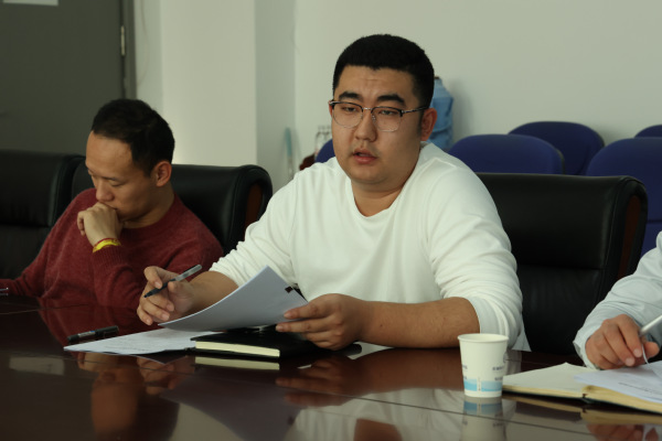 蒋仁福首先代表公司向校团委表示欢迎,并对公司团委给予的支持表示感谢。随后,对公司整体筹备情况进行了汇报,总体介绍了公司两大项目的创新点,并表明对做好本次大赛备赛的决心和信心,下一阶段将一鼓作气,反复打磨作品、精益求精。随后孙志昊、齐志伟及曾菲分别详细介绍了公司重点志愿项目的具体框架与实施情况,并总结了项目培育在当前阶段的不足之处。