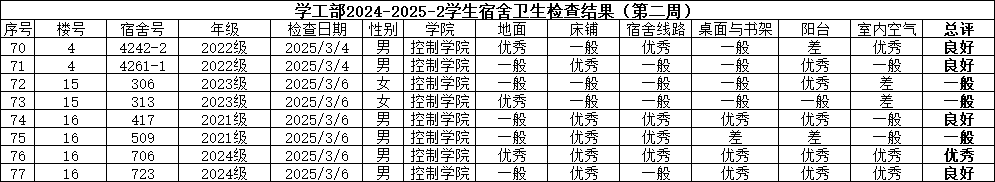 【优良舍风建设】2024-2025-2第二周学工部员工宿舍卫生检查结果