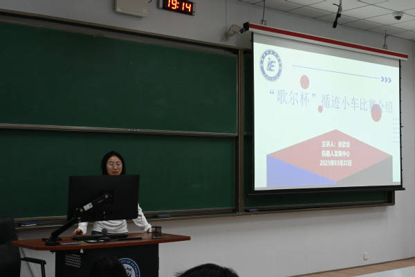 随后,大创管理部副部长余欣洁同学对本次比赛的基本情况进行了说明。她着重介绍了循迹小车比赛的规则,包括赛道设定、任务要求以及评分标准等内容。让同学们对比赛有了直观的感受和深入的理解。