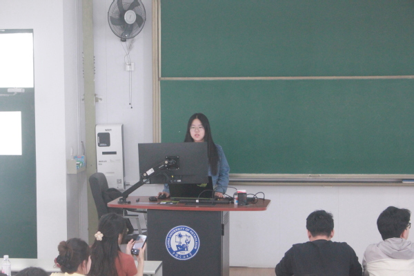 图一 邵明珠同学分享就业经历(摄影:程羽佳)