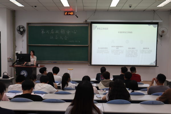 会议伊始,创新创业发展中心各成员自我介绍,交流自己的创新创业经验。上届主席贾洪贺分享了他的工作思路与工作经验,上届副主席张博麟总结了之前的总体发展思路,对下届创新创业发展中心提出了殷切期望。随后,2024级刘力玮等14名同学开始竞选答辩,在答辩过程中,台下各位部长、主席对答辩选手提出针对性建议。