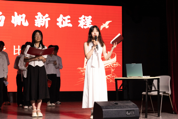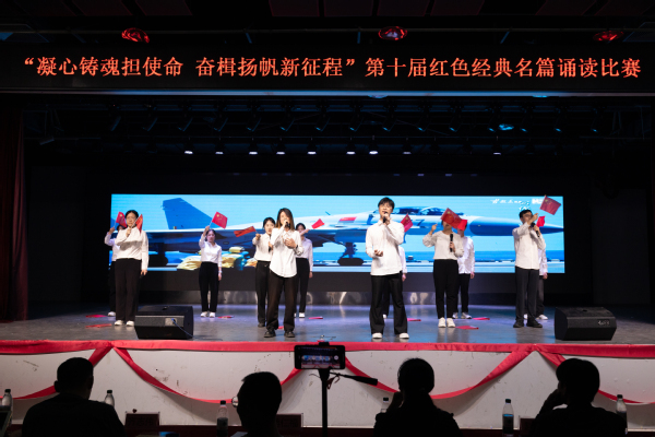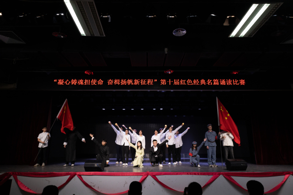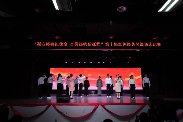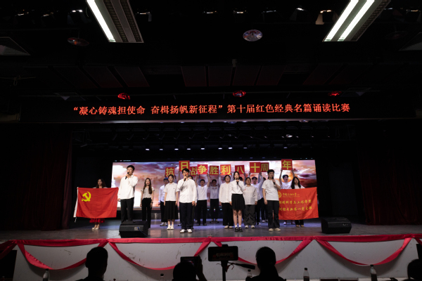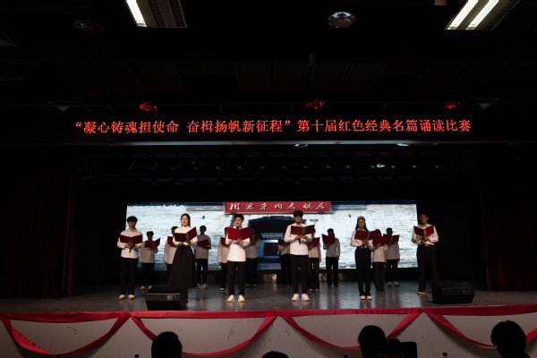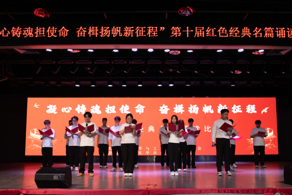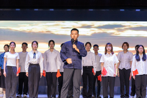 测控专业第一党支部的《赓续奋斗精神,厚植青年担当》则以历史对比勾勒时代巨变:从“1931 年国土沦陷的警报” 到“复兴号穿梭城乡、5G织就天网”的盛世图景,诵读者循着革命先烈“用血肉筑长城”的足迹,发出“以青春之我续写奋斗华章”的铿锵誓言,引发全场共鸣。
