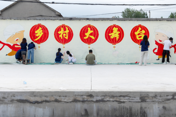 经过七天奋战,原本斑驳陈旧的水泥墙焕然一新,墙绘工作顺利完成。充满乡土气息的图案,不仅美化了村庄环境,更成为宣传乡村特色、增强村民自豪感的重要窗口。