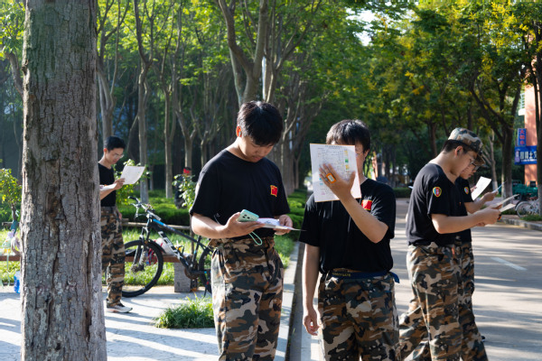 活动现场,同学们热情高涨,全身心投入。有的小组一人负责快速奔袭寻找站点,另一人则专注分析地图、规划路线,分工明确且配合默契;有的小组在遇到路线选择难题时,两人仔细研讨、相互启发,共同找出最佳方案。大家在晨光中穿梭于校园各处,为完成任务全力以赴。上午9点左右,所有小组均顺利完成比赛。短暂休整后,新生们迅速调整状态,在教官的带领下投入到后续的军事训练中。