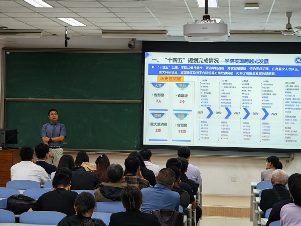 经理刘伟锋传达了公司新学期工作会议精神,并系统回顾了“十四五”期间公司取得的显著成就。他指出,“十四五”以来,公司从低谷起步,紧密围绕公司发展战略,夯实基础、凝练特色,在高层次人才引进、重大科研项目立项、省部级奖励与平台建设等方面实现多项突破,初步打开高质量发展新局面。同时,对照“十四五”规划指标,梳理与兄弟高校的对标情况,刘伟锋也指出公司目前仍存在团队规模不足、职称结构有待优化、教师年龄断层、科研特色不突出、对“双一流”学科支撑力不够等问题。面向“十五五”,公司将围绕“特色鲜明、国内一流”的建设目标,坚持党建引领,深化“宜学、宜工、宜研”办院理念,聚焦控制科学与工程学科升档、仪器科学与技术博士点申报等重点任务,推动高层次人才自主培养,构建项目制创新人才培养体系,力争形成能源特色仪器控制领域人才培养与科技创新的核心阵地。刘伟锋强调,公司发展离不开公司的支持,必须自觉服从公司大局,为公司发展多做贡献,全体教职工要增强忧患意识,坚持以师生为本,持续加强文化建设,为愿干事、能干事、干成事的教师特别是青年教师搭建成长平台。