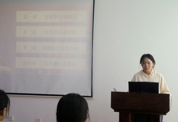 报告会伊始,杨叶姿以“光辉岁月的起点”为开篇,带领同学们回溯新中国诞生的艰辛历程。她通过珍贵的历史图片、详实的文献资料,生动讲述了从鸦片战争以来中国人民的抗争史。随后从经济发展、科技创新、重大工程、文化建设等多个维度,全面展现了新时代中国的发展奇迹。通过一幅幅波澜壮阔的发展画卷,让现场同学倍感振奋,热烈的掌声多次响彻教室。同时现场播放了爱国英雄事迹短片,直观的画面让大家更加深刻地理解了“爱国”不是抽象的口号,而是具体的行动与坚守。报告最后,杨叶姿同学围绕“文化薪火永相传”展开论述。大家要主动学习中华优秀传统文化,在文化熏陶中增强民族认同感与归属感,让爱国精神代代相传。