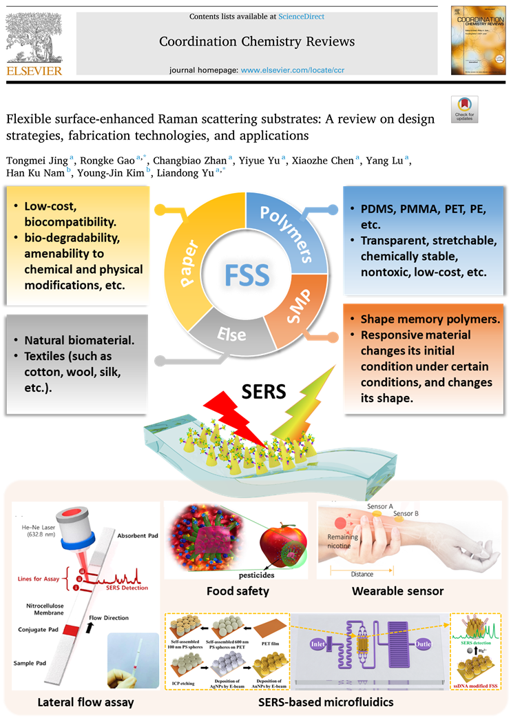 近日,公司控制科学与工程专业2020级博士研究生景彤梅在柔性SERS基底的设计策略、制备技术方面取得进展,相关研究成果《Flexible surface-enhanced Raman scattering substrates: A review on design strategies, fabrication technologies, and applications》发表在《Coordination Chemistry Reviews》。《Coordination Chemistry Reviews》是化学领域的国际知名期刊,目前影响因子为9.4(SCI一区)。论文第一作者为景彤梅,通讯作者为于连栋教授和高荣科教授,BB贝博艾弗森为唯一署名单位和通讯单位。